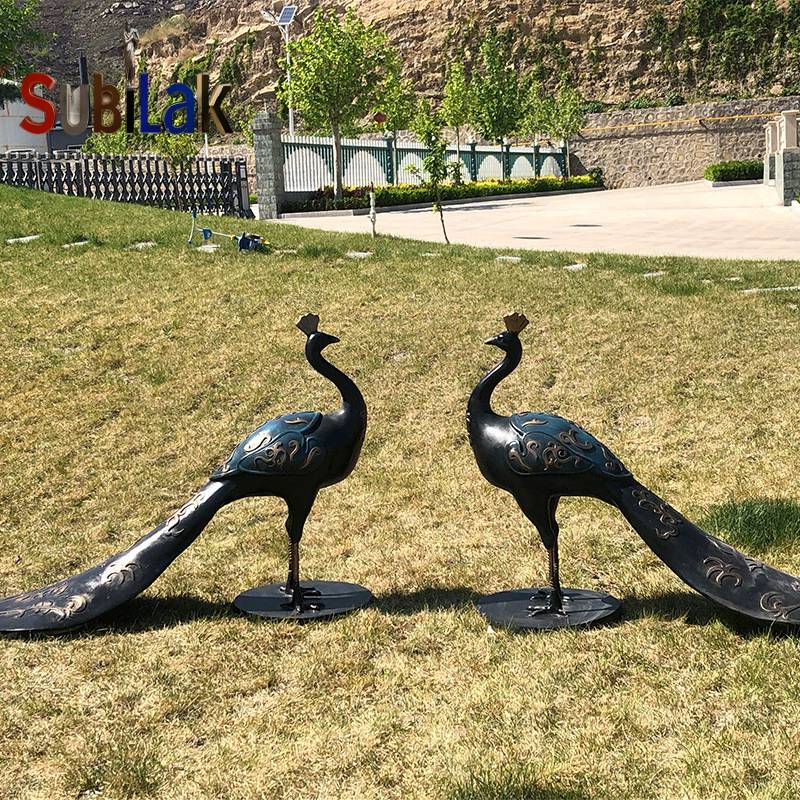 In terms of material and craftsmanship, this set of peacock statues is made of fiberglass reinforced plastic. Through meticulous mold shaping and hand-carving techniques, the form of the peacocks is depicted extremely realistically. The texture on the surface of the statue is exquisitely detailed. The decorative lines on the peacock’s body are smooth and rhythmic. The metallic coating combined with golden patterns not only simulates the weightiness similar to copper casting but also showcases the artisan’s meticulous restoration of the “feather texture” through the details of the patterns. Every curve and every pattern embodies the spirit of craftsmanship, making the peacock’s posture vivid and lifelike. It seems as if it will spread its wings and chirp softly in the next second.