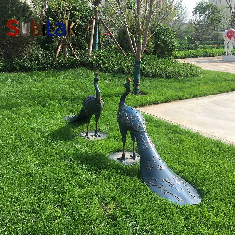 outdoor fiberglass peacock sculpture in the park