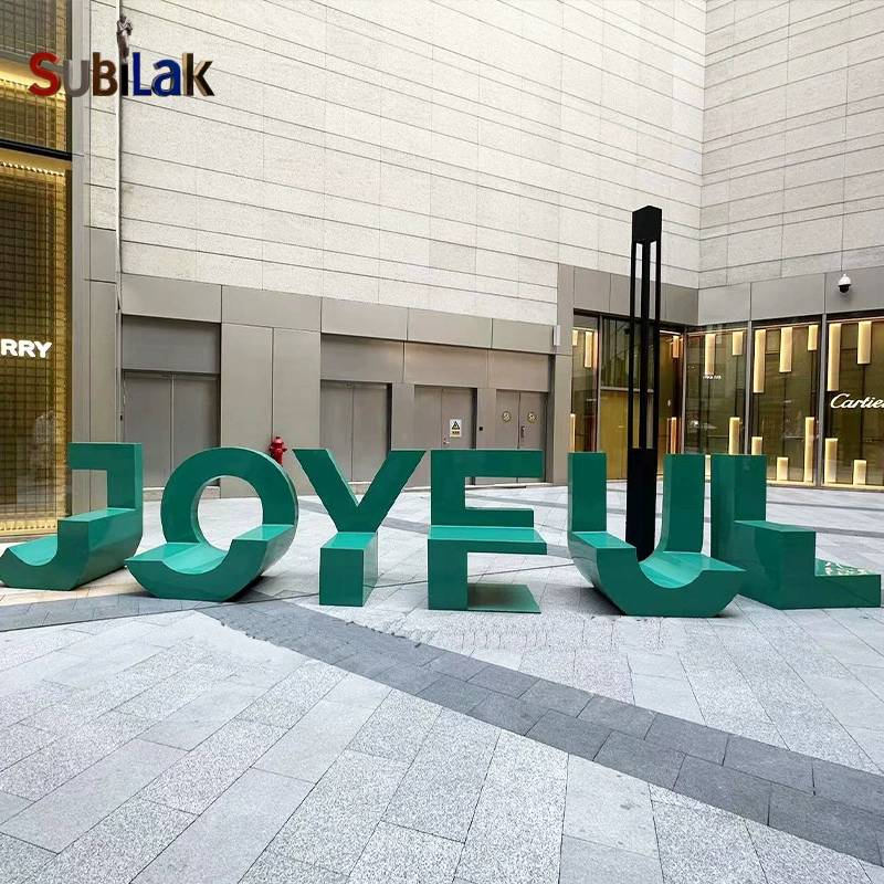 3. Dimensions and Layout: The letters are oversized floor-standing designs, with heights tailored to adult sitting height and lengths extending naturally along the strokes. Arranged horizontally in sequence with moderate spacing, they collectively form the visual theme “LOVE” while each letter independently functions as a leisure unit accommodating single or multiple occupants.
